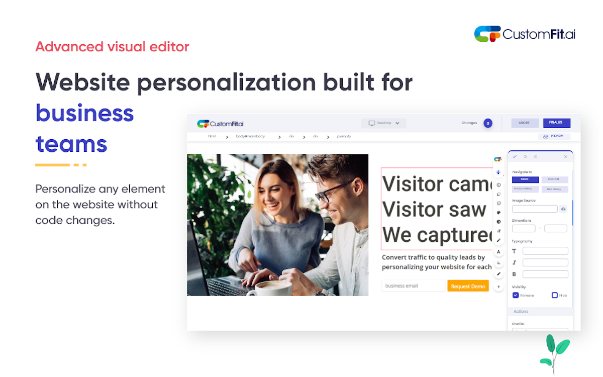 Create experiences on your website that are tailored to every visitor – whether they're new or returning visitors. CustomFit.ai aligns with existing business processes and requires no IT resources.